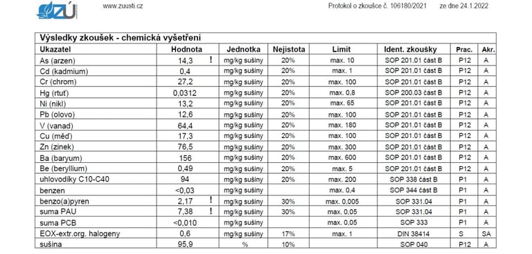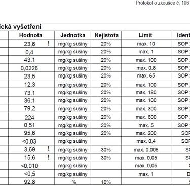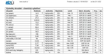 - akreditované rozbory včetně protokolu o akreditovaném odběru