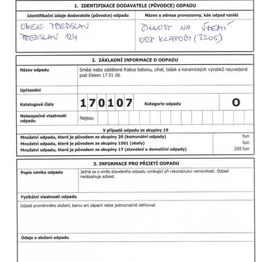 - stavební deníky č. 1 až č. 4 (od 26.1.2021 do 31.5.2021) s vyznačením, kdy byl odpad produkován