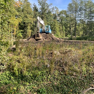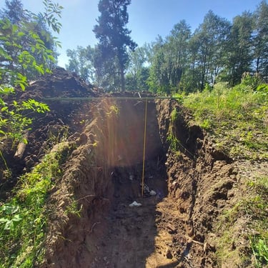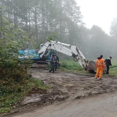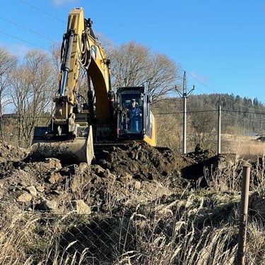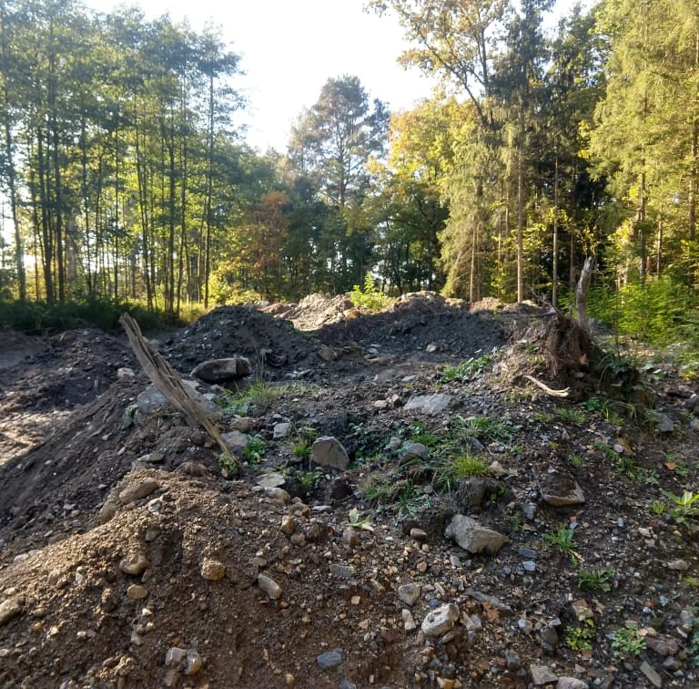 Co je však podstatnější, že všechny tyto terénní úpravy byly prováděny stavebním odpadem obsahujícím hlínu, kamení, ale i nebezpečný asfalt. Bagrista nejdříve 16.1.2023 celý den a 17.1.2023 dopoledne, dokud nevěděl, že je pozorován a focen, vyhloubil na několika místech pozemku díry, do kterých se jal schovávat asfaltové kry, které během rovnání terénu bagr zachytil a vyvalil.