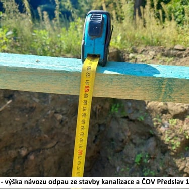 Všechno to vlastně začalo tím, že někdy ve druhé polovině roku 2021 se starosta obce Předslav Bc. Miloslav Kreuzer svěřil členovi našeho spolku s tím, jak se při stavební akcí ČOV Předslav nezákonně nakládá a také dále má nakládat s výkopovým stavebním odpadem. To nakonec přiznal i veřejně na společné schůzce zastupitelů obce a našich členů dne 15.3.2022 v sále makovské hospody.