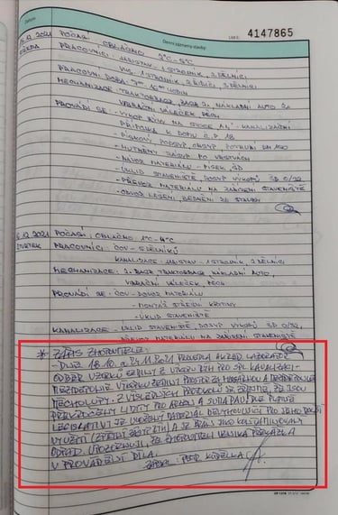 - zápis stavebního deníku ČOV Předslav ze dne 16.12.2021