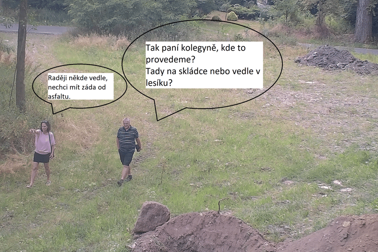 Prima. Jenže ouha, zkusili jsme starostova slova ověřit. Pozemek v Měcholupech byl po celou dobu kontrolován mnoha svědky, byl průběžně monitorován, existuje nespočet fotografií a kamerových záznamů. Mimo jiné byl stav pozemku opakovaně zaznamenán i notářem. Pozemek byl také kontrolován ze strany Městského úřadu Klatovy, jak odborem životního prostředí, tak odborem výstavby. Bývalá vedoucí odbor OŽP paní Chvojková a pan vedoucí OVÚP Boublík se sice dle všeho více věnovali průzkumu okolního hvozdu, ale ani tak jim neuniklo, že „něco málo“ odpadu na obecním pozemku přibylo. K profesionalitě obou vedoucích nelze mít námitek. Koneckonců, v tak krásné přírodní oblasti se může snadno stát, že se tito vedoucí nechali unést atmosférou okolních lesů a zatímco paní Chvojková zřejmě vleže zírala do korun stromů, pan Boublík se nejspíš soustředil na terén těsně pod sebou. Ale pro objektivitu - odpadu si bývalá vedoucí OŽP nakonec všimla a vydala i výzvu k jeho odstranění.