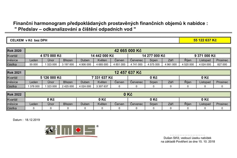 - odeslané obcí Předslav Státnímu fondu životního prostředí, se kterým byla uzavřena Smlouva č. 1190400271 o poskytnutí podpory ze Státního fondu životního prostředí České republiky
