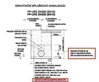 Projektová dokumentace přitom mluví jasně: použití geotextilie a drenáží na nestabilním podloží by právě zajistilo, aby se kanalizace nepropadala. Viz:https://www.obecpredslav.cz/userFiles/dokumenty2/D1.1.07%20Vzorov%C3%BD%20p%C5%99%C3%AD%C4%8Dn%C3%BD%20%C5%99ez%20ulo%C5%BEen%C3%AD%20potrub%C3%AD.pdf. Firma tedy práce provedla v rozporu s PD, a dnes jí zastupitelé dokonce schválili proplacení „víceprací“ za hlubší výkopy.