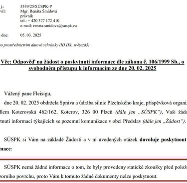 Budeme to pozorně sledovat a zatím ať si o odpovědi starosty na zákonný požadavek občana na přístup k informacím udělá názor každý sám...