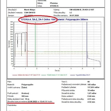 - tlakové zkoušky kanalizace byly provedeny dokonce až 22.6.2022 - viz protokol