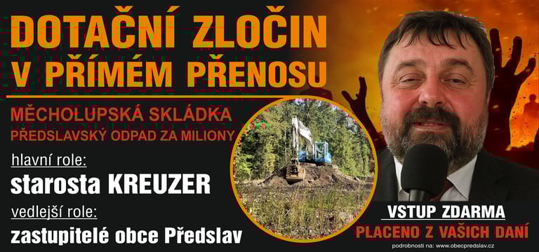Vážený pane Kreuzere. Celkově jste tedy jako starosta obce za podpory obecních zastupitelů okradl obec Předslav a její občany o cca 44 milionů Kč.