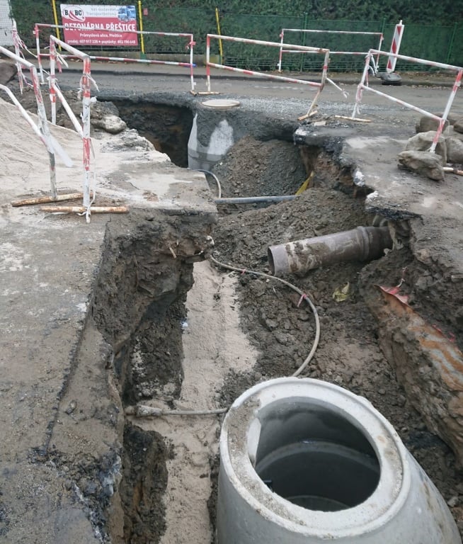 Dle harmonogramu mělo být např. kanalizační potrubí v předmětné části (stoka A) položeno nejpozději do 7.5.2020 a silnice měla mít definitivní povrch před začátkem zimní sezóny. Ještě dne 3.11.2021 byla však silnice v dotčené části rozkopaná více než metr hlubokými výkopy, viz následující foto.